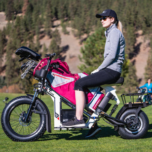 Powered by a 1000 watt-hour lithium battery, Finn also comes with a motorcycle-style front suspension and rear shock absorber for a smooth ride, and its low PSI tires minimize turf impact. Cap it off with front and rear disc brakes for reliable stopping power, and you're ready to hit the front and back nine!